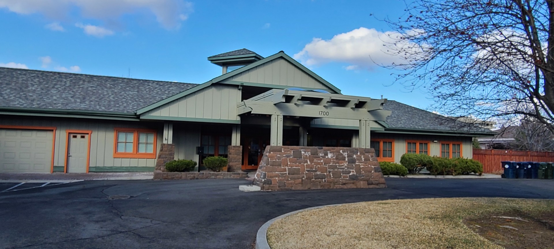 Outside view of the front of Bend House building