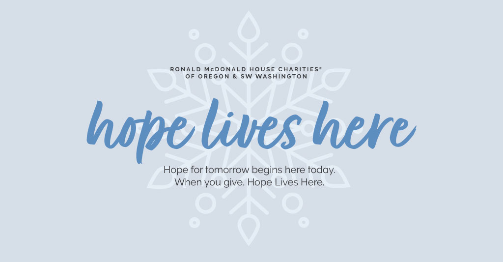 The following trademarks used herein are owned by McDonald’s Corporation and its affiliates; McDonald’s, Ronald McDonald House, Ronald McDonald House Logo, RMHC, Ronald McDonald Family Room, Ronald McDonald Care Mobile and Keeping families close. Ronald McDonald House Oregon is recognized as a public charity under Internal Revenue Code section 509(a) and has 501(c)(3) status. Donations to Ronald McDonald House Oregon are deductible. Donors should consult their tax advisor for questions regarding deductibility. A copy of the Ronald McDonald House Oregon determination letter is available upon request.